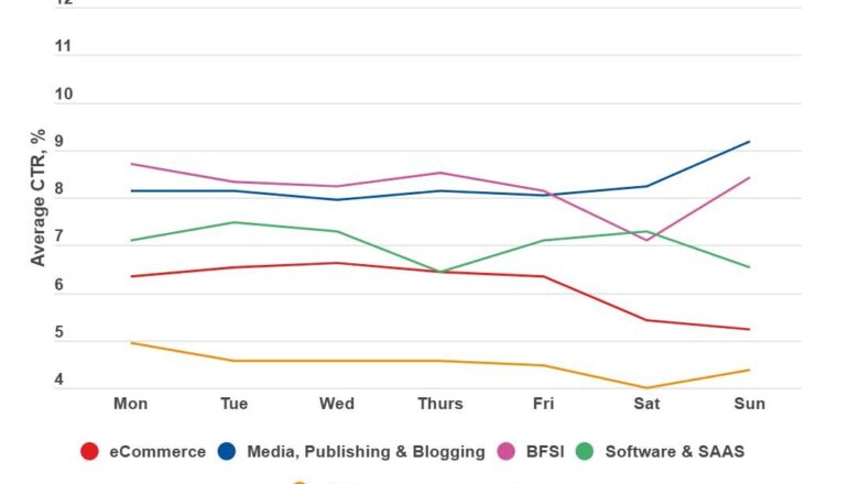Viikonpäivien osalta klikkausprosentti (CTR) jakautuu seuraavasti: